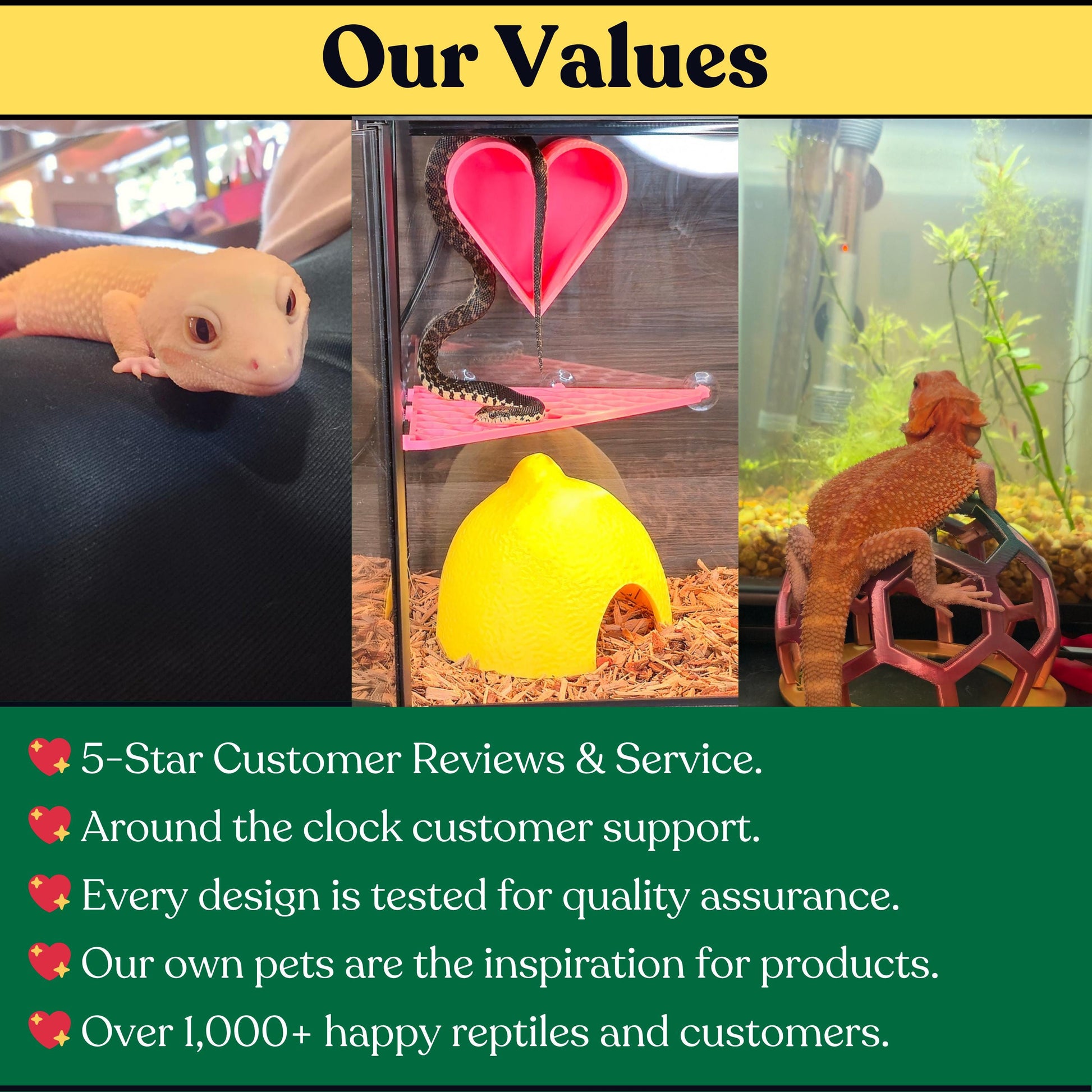 Heat Safety: Can be used under standard reptile heat lamps. As with all 3D-printed items, prolonged exposure to excessive heat may cause slight warping or color fading over time. Please test placement and avoid temperatures above 130°F (53°C) for best long-term results.